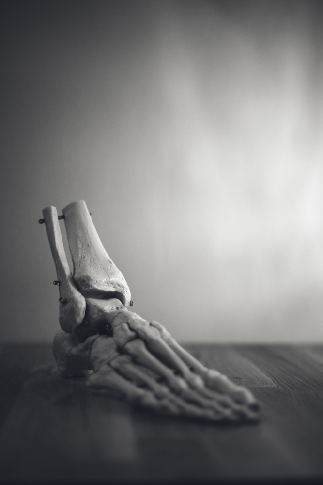 There are many bones that can be fractured in the ankle and foot. Typical fractures that occur are to the fibula bone (avulsion fracture), metatarsal bone fractures and calcaneal fractures. Fractures are typically immobilized with casting or bracing. In severe cases surgery may be required to align and stabilize the bone with pins or plates.